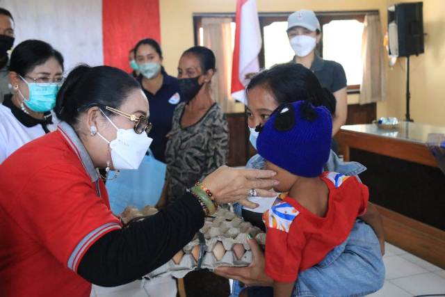 Selain itu, BKOW juga menaruh perhatian terhadap keberadaan anak stunting dengan memberikan bingkisan tambahan berupa susu. Ia berharap, dengan pemenuhan gizi yang baik, anak-anak itu bisa tumbuh dan berkembang dengan normal sesuai dengan usia mereka. Masih berkaitan dengan persoalan stunting, istri Wakil Gubernur Bali ini juga menekankan pentingnya upaya pencegahan. Menurutnya, pencegahan stunting bisa dilakukan mulai dari memberi perhatian pada kesehatan calon ibu sejak remaja hingga pemenuhan gizi pada masa kehamilan. “Sangat penting bagi remaja untuk memperhatikan kesehatan reproduksinya. Demikian juga pemenuhan gizi pada saat mengandung, ” lanjutnya. Melalui upaya itu, ia berharap angka stunting di Daerah Bali dapat segera dituntaskan.