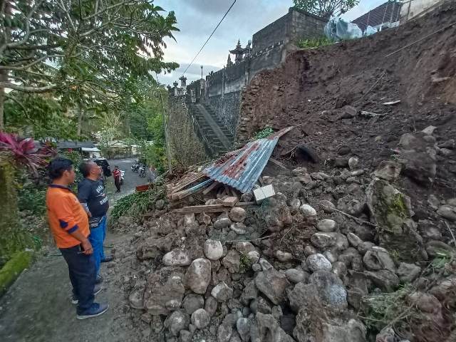 “Musibah longsor itu dikarenakan hujan dengan intensitas tinggi mengakibatkan senderan pekarangan rumah milik I Gede Mertawiasa (54) itu diduga akibat tergerus hujan yang dalam dua hari terakhir ini terjadi di seputaran Kecamatan Tabanan,”katanya.