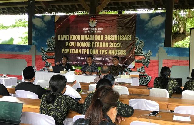 Sementara Ketua KPU Tabanan I Gede Putu Weda Subawa usai rapat koordinasi pemetaan TPS dan TPS khusus di Aula Rumah Makan CS Bedha, Tabanan mengatakan, pemetaan TPS dan TPS khusus didasari oleh Peraturan KPU nomor 7 Tahun 2022..