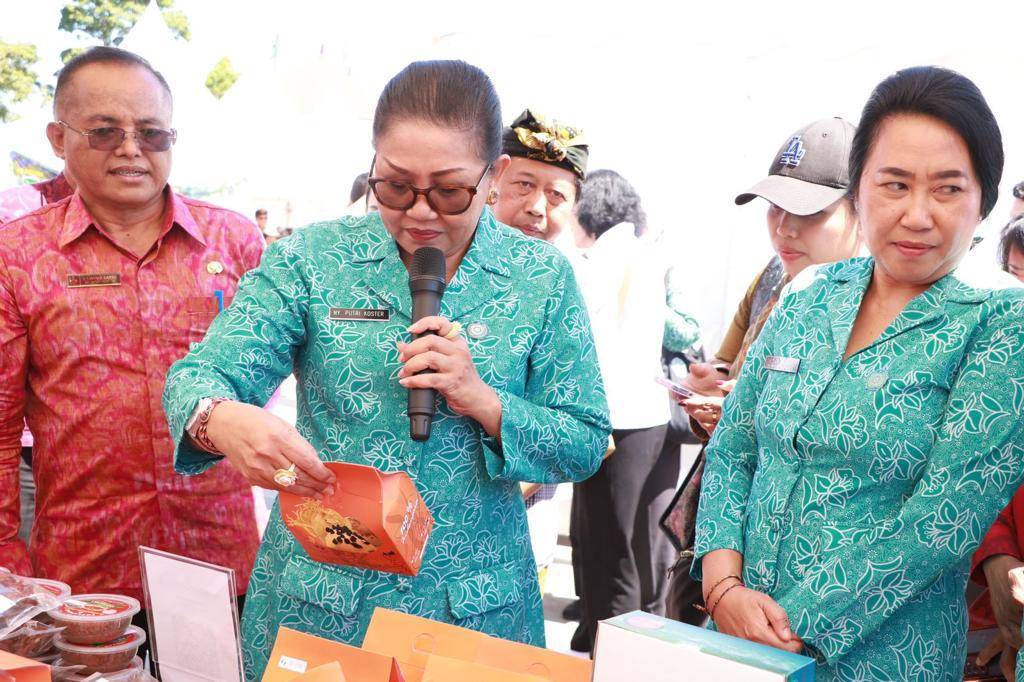 BANGLI, MEDIAPELANGI.com – Ketua TP PKK Provinsi Bali Ny. Putri Koster menggelar bersinergi dengan Ketua TP PKK Kabupaten / kota se Bali kembali menggelar aksi sosial bertajuk Pasar Rakyat dengan tema “Berbelanja dan Berbagi“. Aksi sosial yang rutin digelar secara bergilir di setiap bulannya di seluruh Kabupaten / kota se-Bali ini yang kali ini berkolaborasi dengan Ketua TP PKK Kabupaten Bangli Ny. Sariasih Sedana Artha dilaksanakan di Alun-Alun Kabupaten Bangli, Bangli, pada Rabu (9/8/2023).